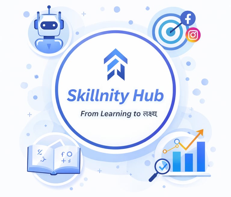 Skillnity Hub helps you learn practical skills that truly matter in today’s digital world. From AI tools to marketing and analytics, we make learning simple, clear, and result-driven. तुमच्या growth साठी योग्य skills शिकवा आणि confidence build करा. Start your journey from learning to lakshya 🚀